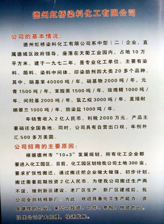 德州虹橋染料化工有限公司招商引資說(shuō)明